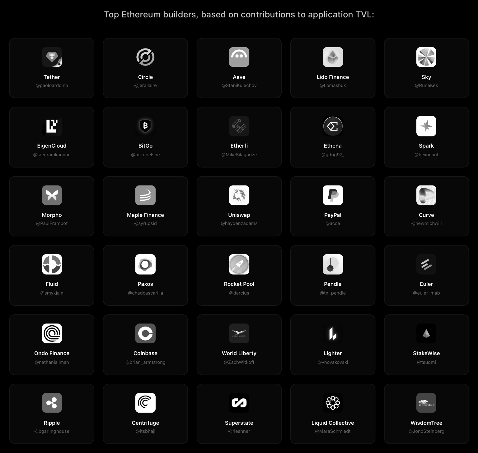 While ETH is often described as highly decentralized, most of its economic activity is supported by a relatively small number of major players. More than 90 percent of the value locked on the network comes from large application builders.