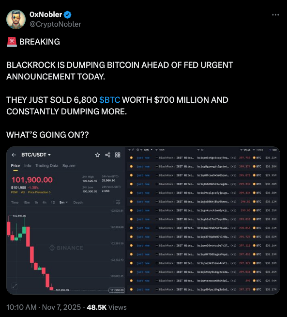 BlackRock was among the largest sellers, reportedly offloading around 6,800 BTC worth over $700 million. The sales occurred in several large transactions averaging roughly $30 million each. Despite recent inflows into Bitcoin ETFs, these efforts were insufficient to offset the broader outflows.